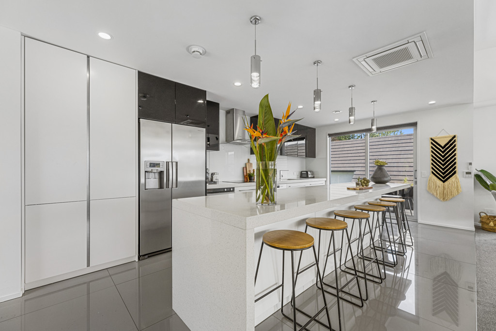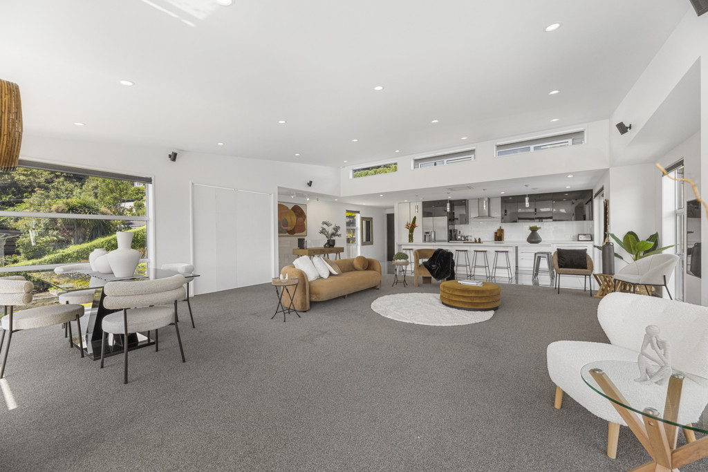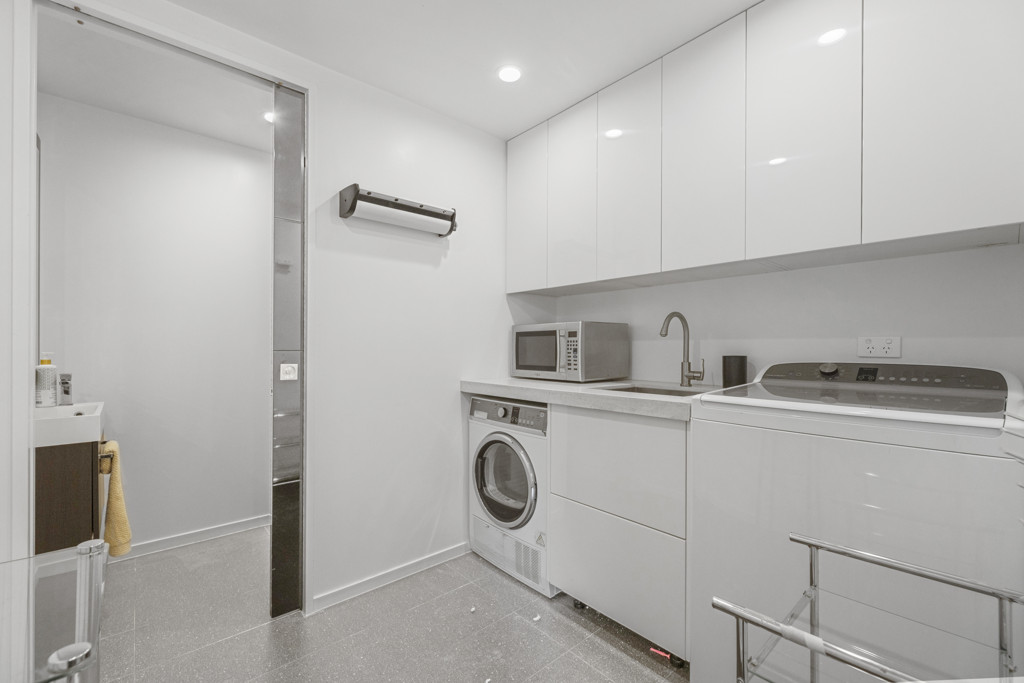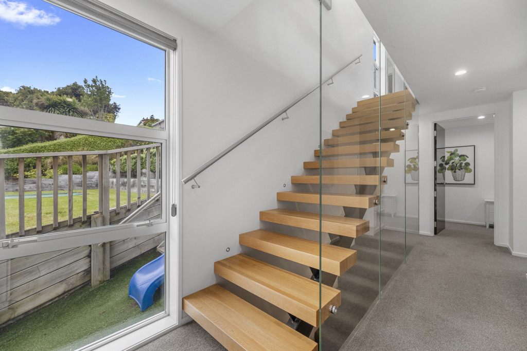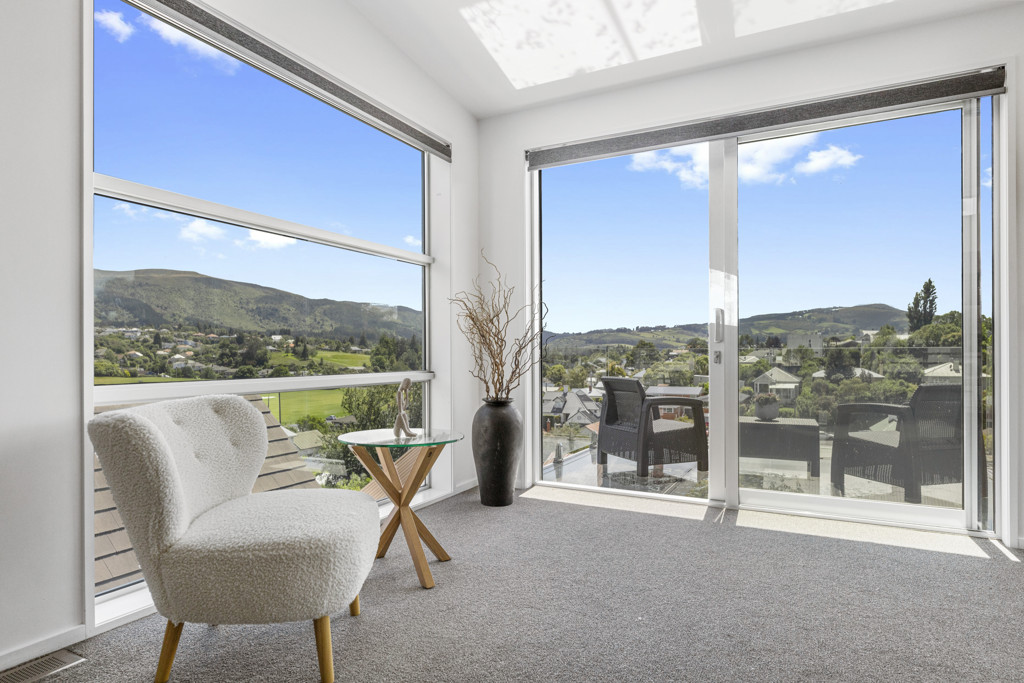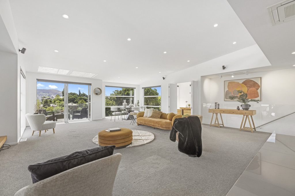 Spread over 3 levels, an impressive digital-entry front door leads to the heart of the main residence - an expansive open plan kitchen, dining and living area, sophisticated and sun filled, and designed for both everyday living and elegant entertaining. This impressive room opens to the quirky glass balcony with north-facing aspect and views across Maori Hill, Bishopscourt and Dunedin hills.