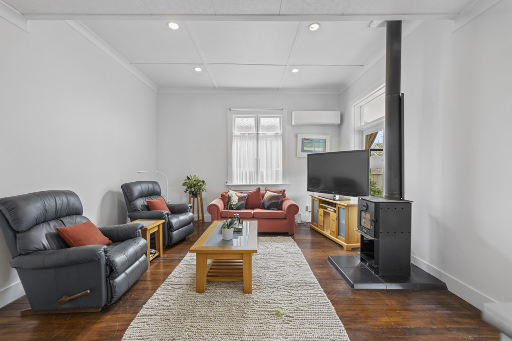 The open-plan layout creates a seamless flow for everyday living, with a generous lounge featuring both a wood burner and heat pump, positioned adjacent to the kitchen. This area flows through to the laundry, where a second toilet and shower provide added convenience and help ease busy mornings.