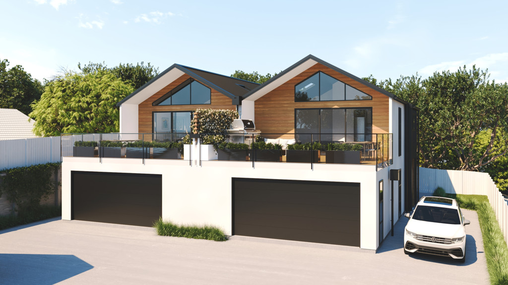 Each home has been expertly designed by Lewis Architecture, offering sun-soaked living spaces, raked ceilings, ensuites, and 2- car garages. The remaining 3-bedroom residence enjoys stunning views over the city, harbour, and ocean, perfectly capturing Dunedin's natural beauty.