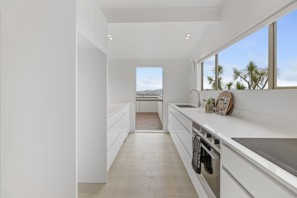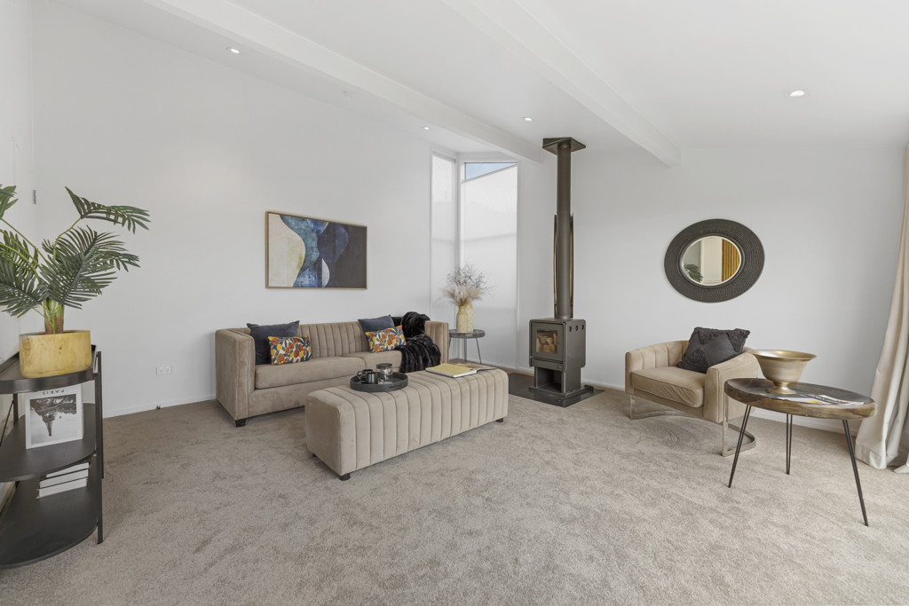 The updated kitchen features quality appliances, contemporary finishes, and a butler's pantry, flowing seamlessly into the open-plan dining area and out to a large deck-perfect for entertaining while enjoying the views. A separate lounge provides relaxed living and warmth, anchored by a wood burner, while upgraded double glazing enhances comfort throughout the home.