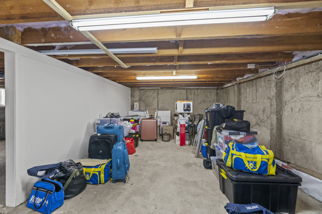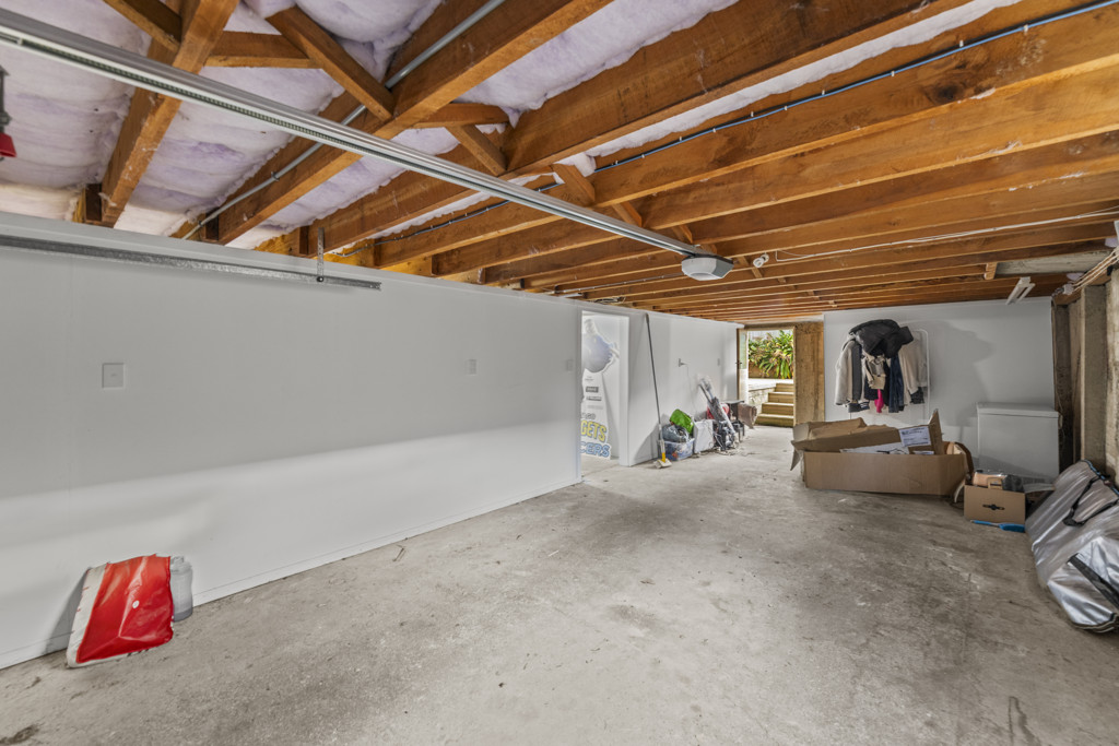 The secure garage provides more than just parking, incorporating a workshop space, while the adjoining area offers flexibility for hobbies, games, or even a home gym, alongside a large storage room to keep everything neatly tucked away.