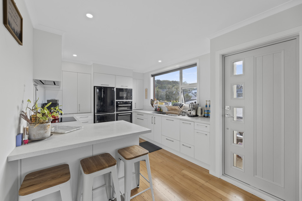 Step inside and you'll immediately notice the light, comfort, and care that has gone into every detail. The modern kitchen is both functional and inviting, with excellent space for preparation, quality appliances, and a breakfast bar that naturally becomes a place to gather. From here, the home flows effortlessly into the dining and living area, complete with built-in shelving and a cosy yet contemporary feel-perfect for both quiet nights in and entertaining guests.