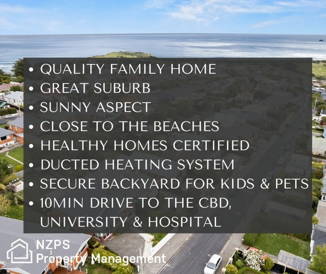 NZPS Property Management is pleased to present this delightful family home, perfectly positioned just minutes from Dunedin’s stunning south coast beaches.